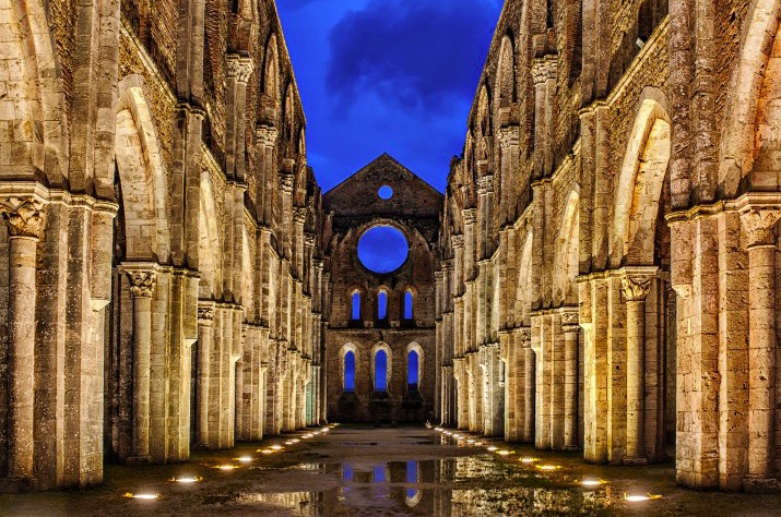 L’’altra eccezione è rappresentata da una rapida visita, da parte dell’ex detective e degli altri ospiti dell’albergo, all’abbazia di San Galgano.